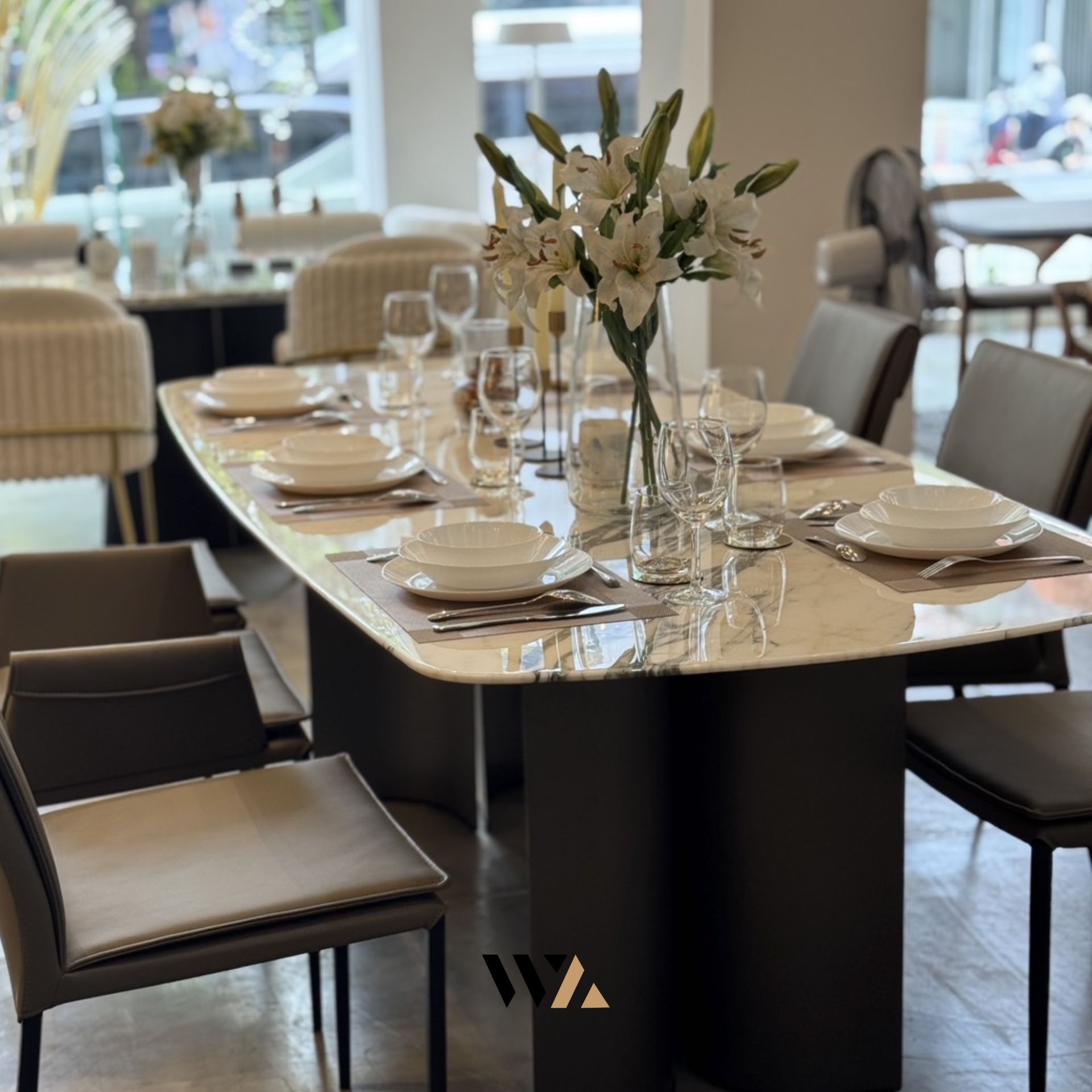 dining table set ที่เปี่ยมไปด้วยความหรูหราและมีเอกลักษณ์เฉพาะตัว ไม่ได้เกิดขึ้นจากความบังเอิญ แต่เกิดจากการตั้งใจคัดสรรวัสดุที่ดีที่สุดและการผ่านกระบวนการผลิตที่ประณีตบรรจงในทุกขั้นตอน การมี dining table ที่สวยงามและตอบโจทย์การใช้งานจริงคือการลงทุนเพื่อความสุขระยะยาวของทุกคนในครอบครัว หากคุณกำลังมองหาความแตกต่างและต้องการเปลี่ยนจินตนาการให้กลายเป็นความจริง WA Living and Design พร้อมที่จะเป็นผู้ช่วยคนสำคัญของคุณ ด้วยทีมดีไซเนอร์มืออาชีพและ Material Library ที่รวบรวมวัสดุเกรดพรีเมียมจากทั่วทุกมุมโลกไว้ให้คุณเลือกสรร เราพร้อมให้คำปรึกษาและดูแลการผลิตอย่างใกล้ชิด เพื่อให้มั่นใจว่าโต๊ะทานข้าวชุดใหม่ของคุณจะเป็นมากกว่าแค่เฟอร์นิเจอร์ แต่คือผลงานมาสเตอร์พีซชิ้นเดียวในโลกที่สะท้อนตัวตนของคุณได้อย่างสมบูรณ์แบบ