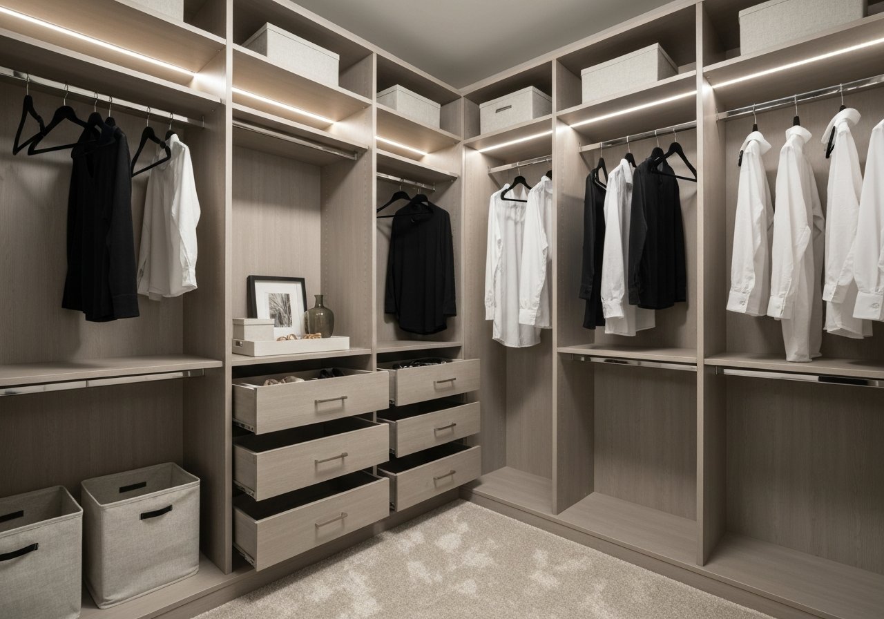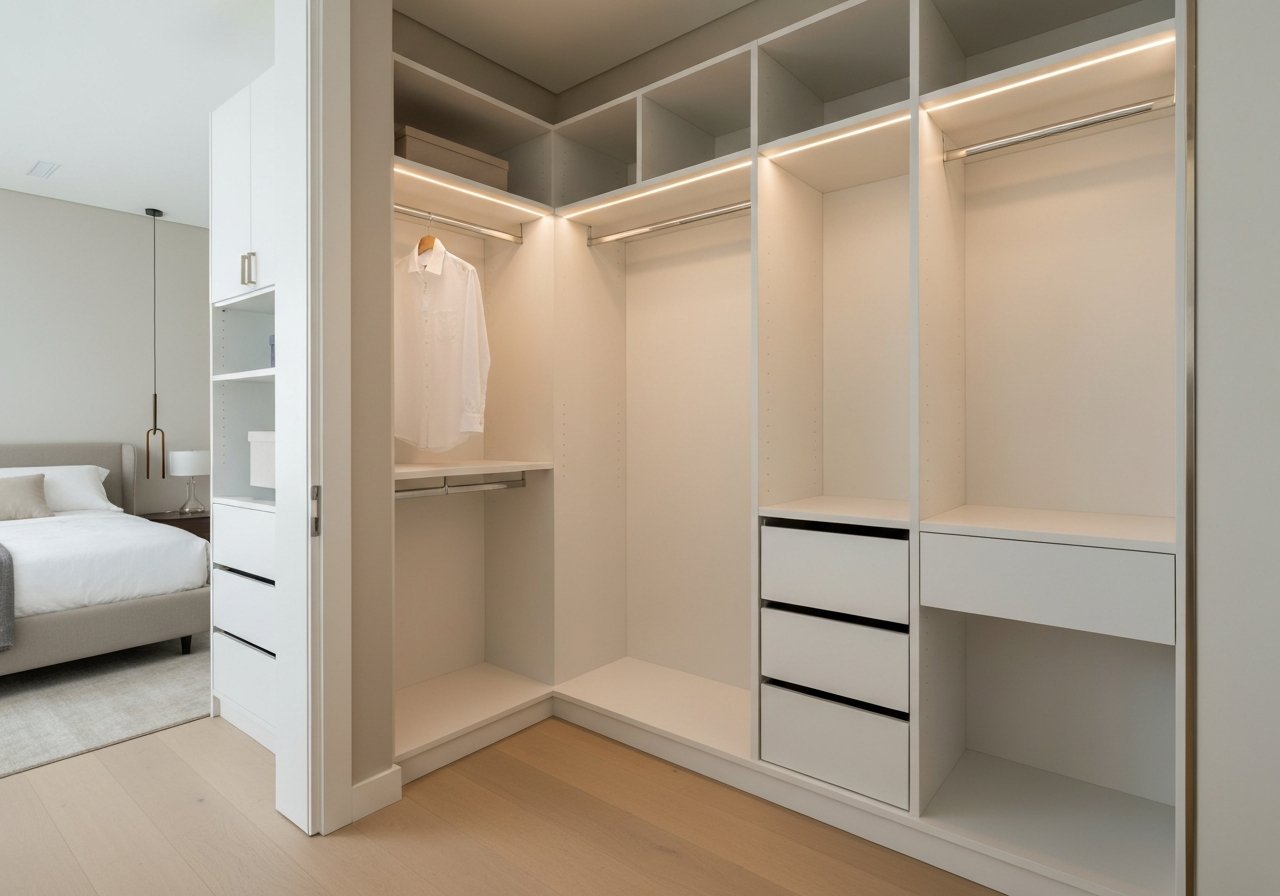 ความหรูหราที่แท้จริงไม่ได้มองเห็นแค่ภายนอก แต่ต้องสัมผัสได้จากการใช้งานภายใน การออกแบบฟังก์ชันการจัดเก็บ (Inner Function) ต้องสอดคล้องกับพฤติกรรมของผู้ใช้งาน ไม่ว่าจะเป็นลิ้นชักเก็บเครื่องประดับที่บุด้วยกำมะหยี่นุ่มถนอมของรัก ช่องจัดเก็บเนคไทและนาฬิกาที่เป็นระเบียบ หรือชั้นวางกระเป๋าแบรนด์เนมที่ออกแบบความสูงมาอย่างพอดี นอกจากนี้ สิ่งที่ขาดไม่ได้ในการสร้างบรรยากาศ Walk-in Closet ระดับพรีเมียมคือการออกแบบระบบแสงสว่าง (Lighting Design) การติดตั้งไฟ LED Strip Light แบบซ่อนเส้นไฟ (Concealed Light) ไว้ภายในตู้ หรือการใช้ไฟ Sensor ที่เปิดอัตโนมัติเมื่อเปิดหน้าบาน จะช่วยให้การมองเห็นเสื้อผ้าชัดเจนขึ้นและสร้างความรู้สึกเหมือนกำลังเดินเลือกของในช็อปแบรนด์ดัง แสงไฟสี Warm White ที่ส่องกระทบกับเสื้อผ้าและเครื่องประดับจะขับเน้นความงามของสิ่งของเหล่านั้นให้โดดเด่นยิ่งขึ้น เปลี่ยนการแต่งตัวในทุกเช้าให้กลายเป็นช่วงเวลาพิเศษที่เต็มไปด้วยความสุนทรีย์