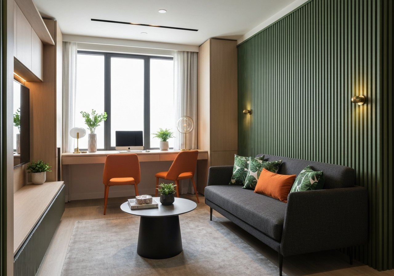 เมื่อพื้นที่ใช้สอยมีจำกัด ความหรูหราจึงต้องมาพร้อมความฉลาดในการซ่อนฟังก์ชัน (Practical Creativity) งานสั่งทำในปี 2026 จะไม่เน้นการโชว์ฟังก์ชันที่ดูวุ่นวาย แต่จะซ่อนมันไว้ภายใต้ดีไซน์ที่เรียบง่ายที่สุด เช่น Invisible Office ที่ดูภายนอกเหมือนตู้เก็บของลายหินอ่อนสุดหรู แต่เมื่อเปิดออกมาจะพบกับโต๊ะทำงานที่อุปกรณ์ทุกอย่างถูกจัดวางไว้อย่างเป็นระบบ การออกแบบที่คำนึงถึงการใช้งานที่หลากหลายในชิ้นเดียวช่วยให้การ แต่งคอนโด ของคุณคงบรรยากาศของพื้นที่พักผ่อนได้ตลอดทั้งวันโดยที่ไม่มีอุปกรณ์สำนักงานมาทำลายอารมณ์ความผ่อนคลาย