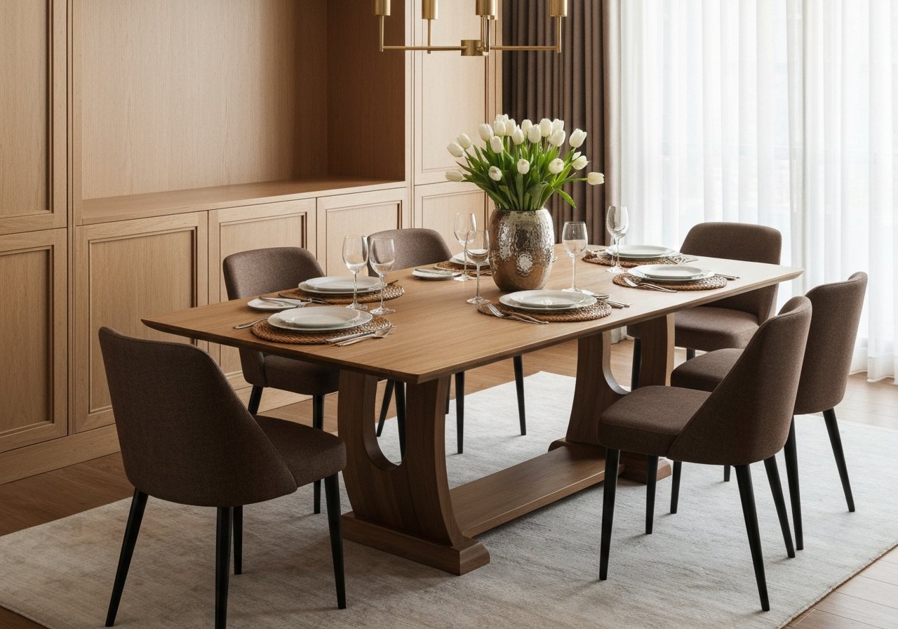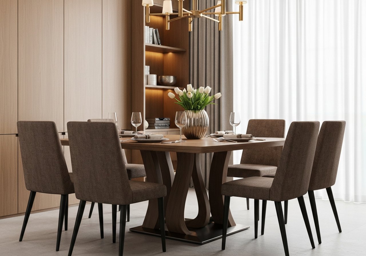 การเลือกวัสดุที่มีคุณสมบัติสะท้อนแสงเป็นอีกหนึ่งเทคนิคที่ช่วยขับความโดดเด่นให้กับ dining table โดยเฉพาะการเลือกเก้าอี้ที่มีโครงสร้างขาเป็นโลหะชุบทอง แซมเปญโกลด์ หรือสแตนเลสขัดเงา ซึ่งจะช่วยเพิ่มประกายความหรูหราเมื่อตกกระทบกับแสงไฟในยามค่ำคืน การจับคู่ระหว่าง โต๊ะทานข้าว ท็อปหินอ่อนเข้ากับเก้าอี้บุผ้ากำมะหยี่หรือหนังแท้จะช่วยสร้างมิติของเนื้อสัมผัสที่ดูแพง สิ่งสำคัญที่ห้ามมองข้ามคือการวัดระยะระหว่างขาโต๊ะเพื่อให้เก้าอี้สามารถเลื่อนเก็บเข้าไปได้จนสุด 100% ซึ่งจะช่วยเปิดพื้นที่ทางเดินให้โล่งขึ้นในเวลาที่ไม่ใช้งาน หรืออาจเลือกใช้ม้านั่งยาวดีไซน์หรูในฝั่งที่ติดผนังเพื่อลดจำนวนขาเก้าอี้ที่ดูวุ่นวายลง